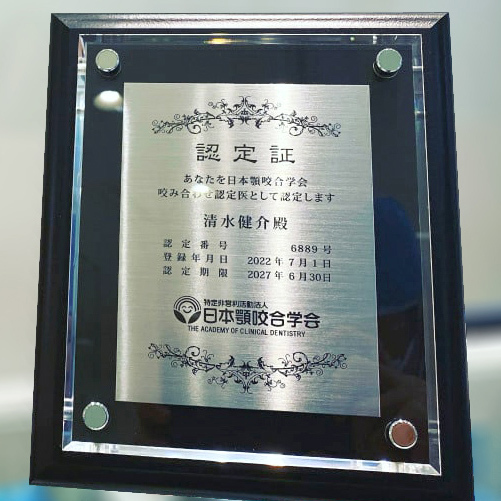 でもご安心ください。当院の院長は、日本顎咬合学会「咬み合わせ認定医」の資格を持つ噛み合わせのエキスパートです。