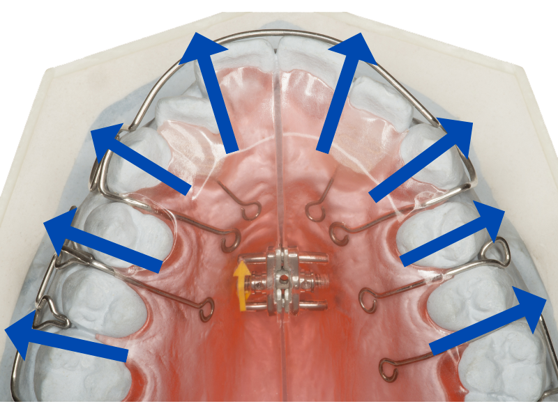 またこの拡大床は奥歯を左右に広げようとしますから、経験不足の歯科医師では、奥歯の位置がおかしくなってしまうことも。