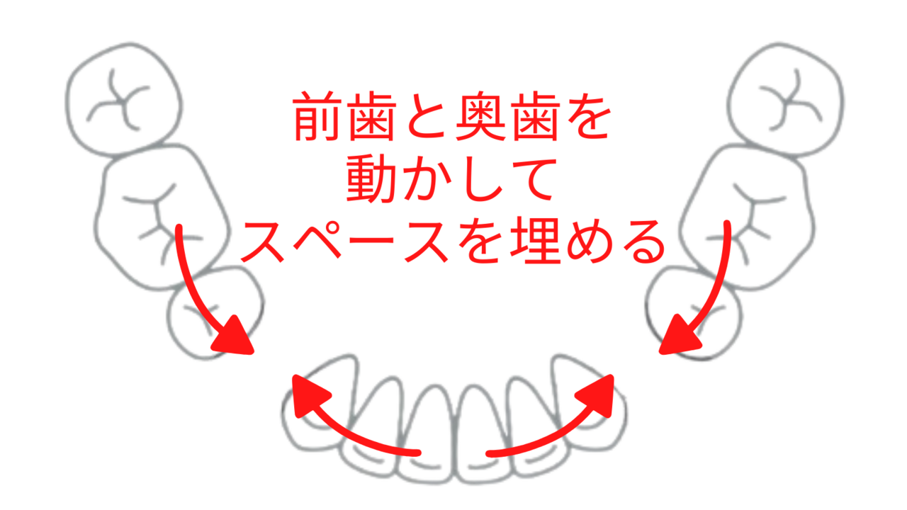 そうならないためには、前歯だけでなく奥歯も少し前に動かして、スペースを埋めることが必要。