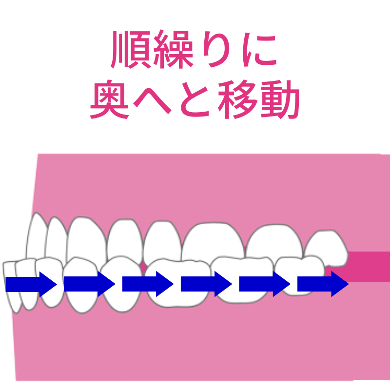 それにより空いたスペースに次の奥歯を動かし、さらに次の奥歯を動かします。