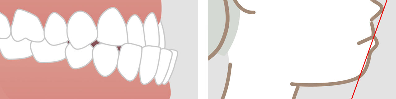 また奥歯が斜めに生えている場合、その奥歯の傾きが徐々にひどくなって前歯を外側に押し出してしまい、さらにひどい受け口になることも少なくありません。